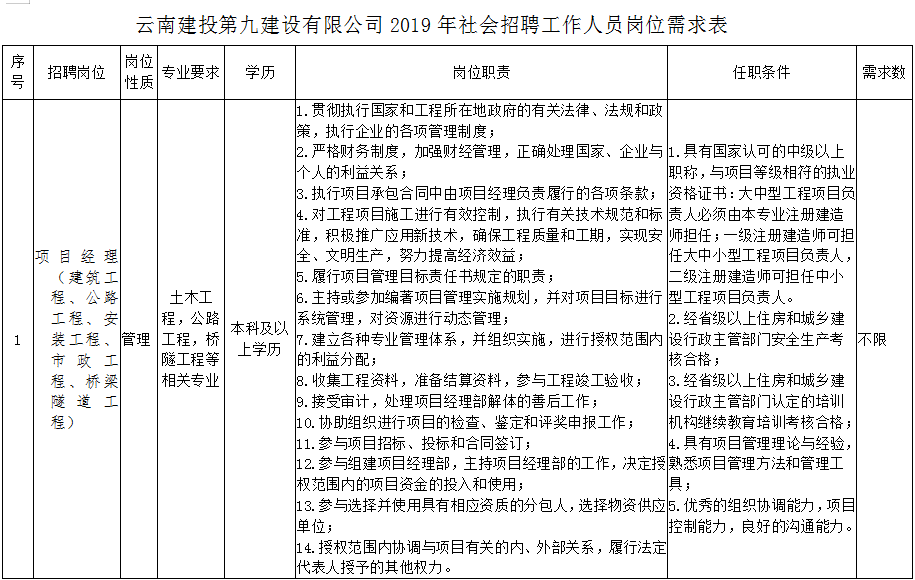 云南建投第九建設(shè)有限公司2019年社會(huì)招聘簡(jiǎn)章
