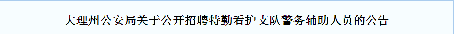 大理州公安局關(guān)于公開招聘特勤看護支隊警務(wù)輔助人員的公告