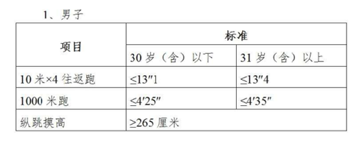 資格審核合格的人員進入體能測試,體能測試按照公安部《關于印發(fā)公安機關錄用人民警察體能測評項目和標準(暫行)的通知》及其所附標準開展。體能測試的項目如下: