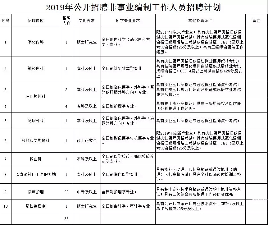 根據(jù)醫(yī)院工作需要,經(jīng)研究決定,2019年云南省第三人民醫(yī)院面向社會(huì)公開招聘非事業(yè)編制工作人員33人,現(xiàn)將有關(guān)招聘事宜公告如下: