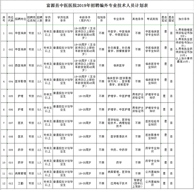 富源縣中醫(yī)醫(yī)院2019年招聘編外專業(yè)技術(shù)人員計劃表如下: